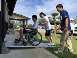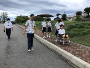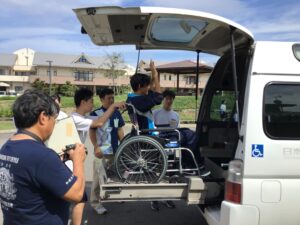 その後、グループに分かれて車椅子体験を行いました。