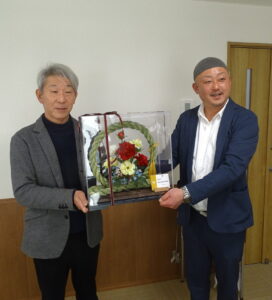 鹿田明浩会長(右) と 仲原裕司海山園施設長(左)
