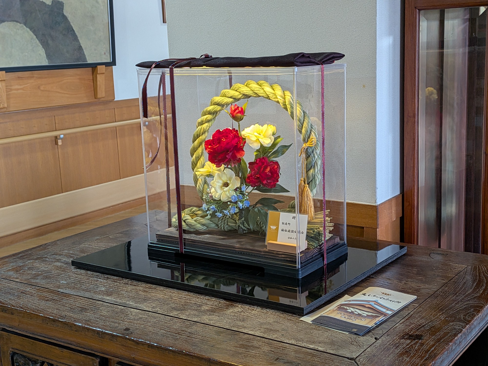 海山園ロビーに飾らせていただいています。間接照明をあてゴージャス感UP!