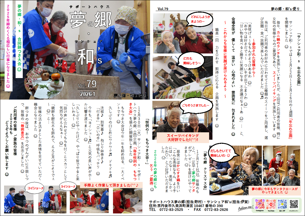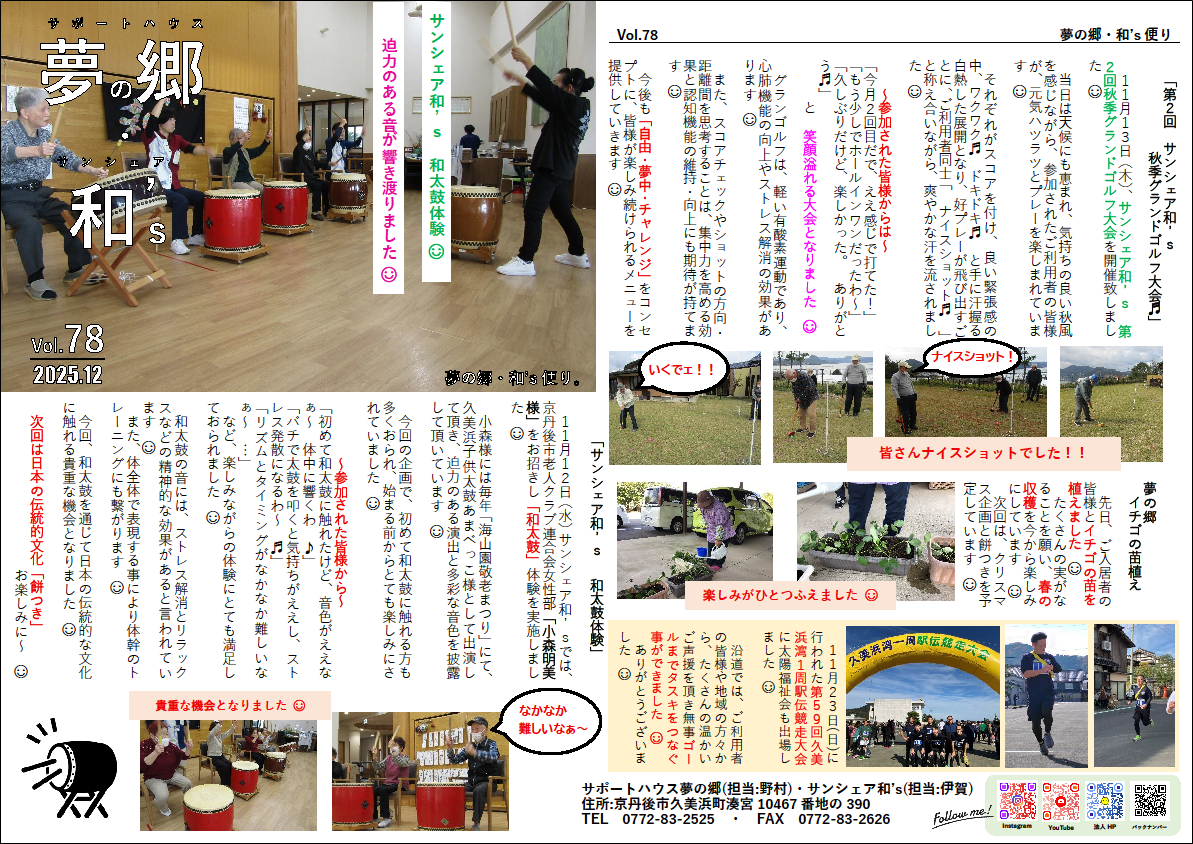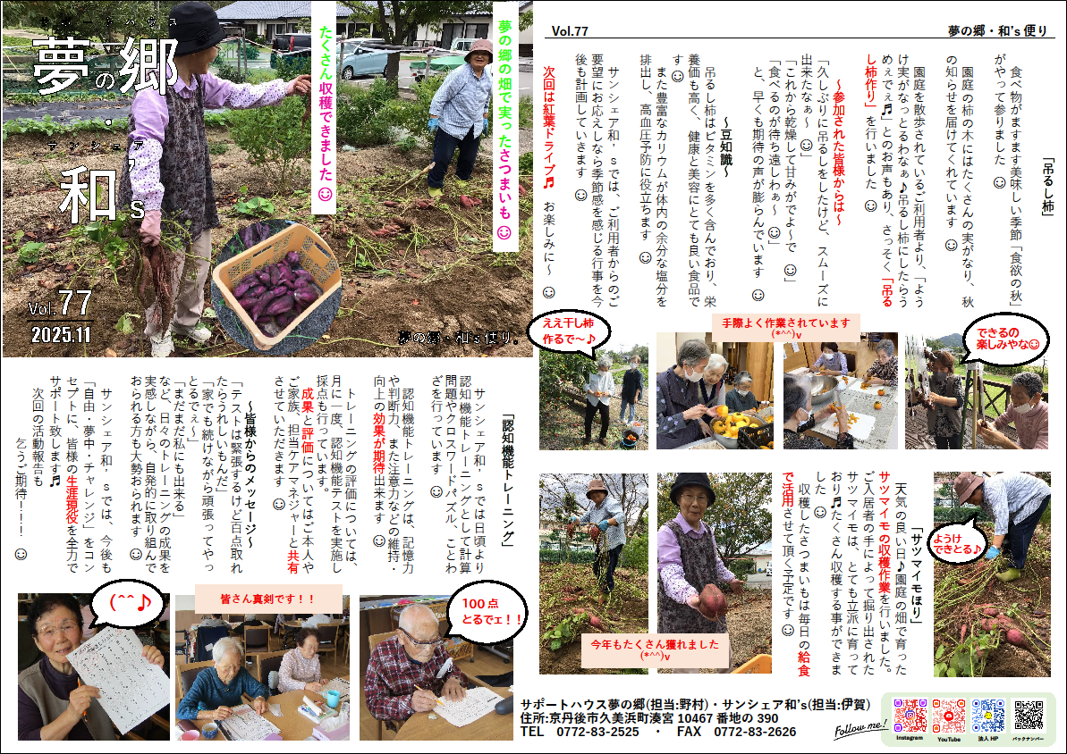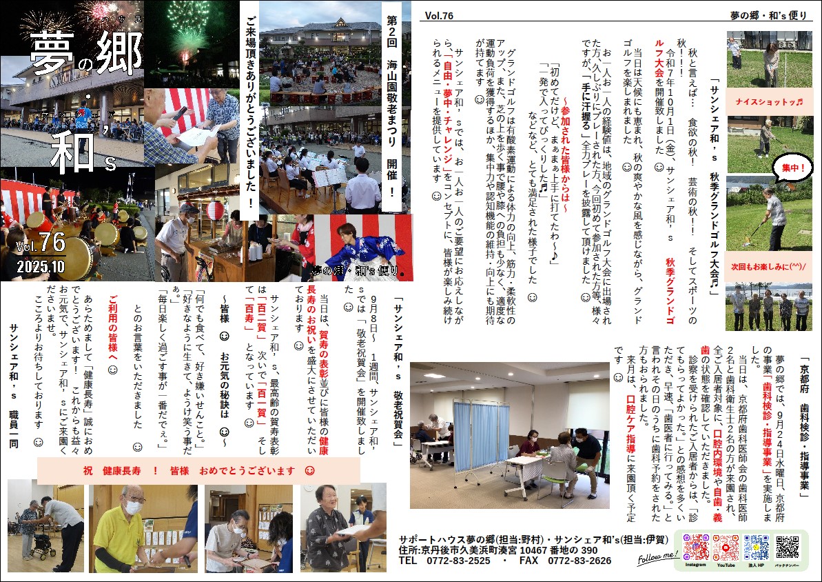 サポートハウス夢の郷・サンシェア和’sの活動を毎月お届けしています。